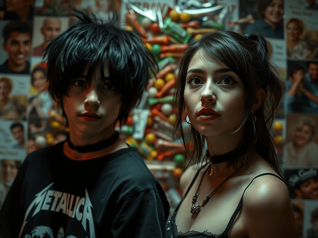 The boy squatted in baggy, low-riding pants as black as his Metallica T-shirt and greasy hair. She wasn’t sure what was more revolting, his underwear leering at her from his droopy drawers or his arms and clothes glistening with chocolate stains. He was positively drooling on himself.