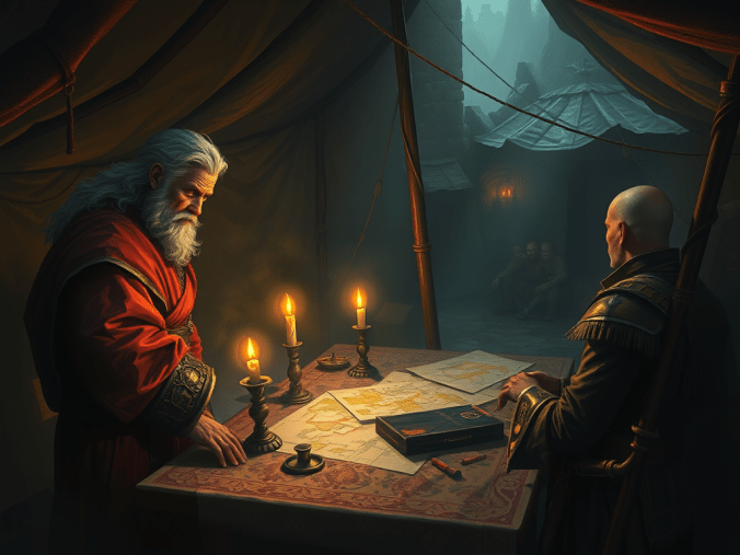 As Soroykin slipped out of the tent, he glanced back to see Quorous already bent over his maps, calculating not battle positions, but the quickest routes to the city treasury.