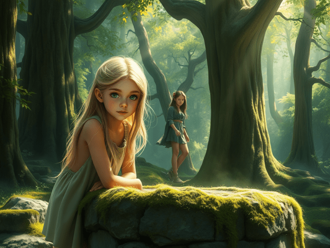 The forest floor was soft beneath nine-year-old Faline’s feet, a carpet of moss and fallen leaves muffling her steps. Ravael’s distant call echoed between the ancient trees—”Ready or not, here I come!”—and Faline stifled a giggle.