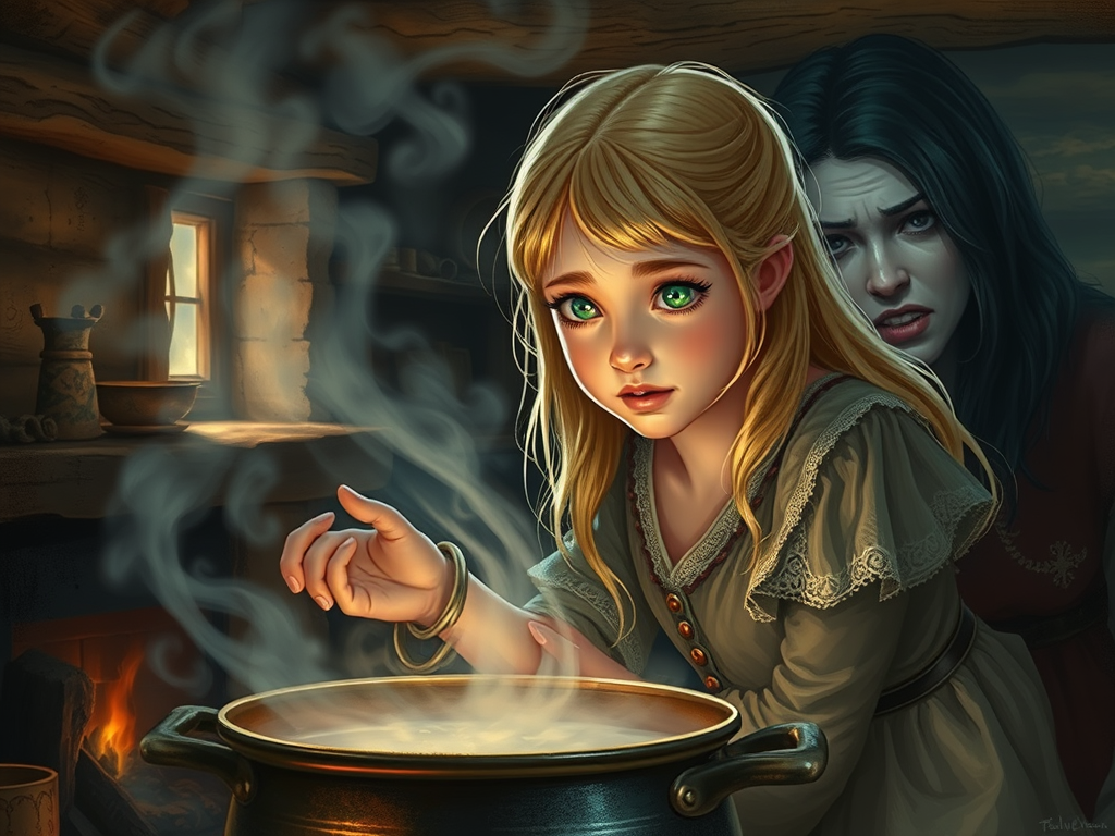 Three weeks had passed since Grandmama’s arrival, and the cabin had settled into an uneasy rhythm. Mama stood next to the cooking pot, throwing in herbs, turnips, and potatoes. The fire beneath burned low, the water barely warm.
